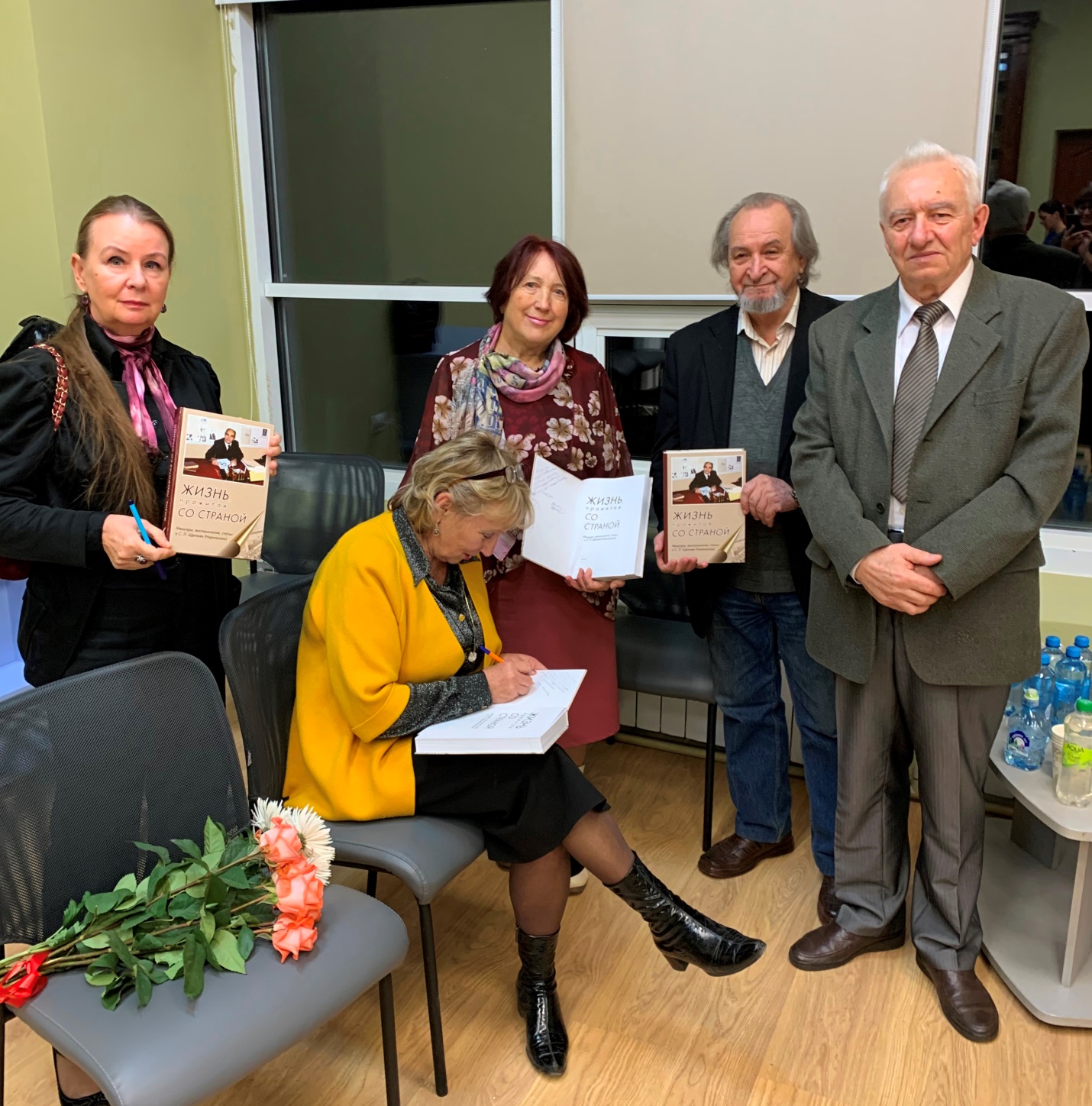 Викторова Александра Сергеевна, надписывает книгу воспоминаний о своем отце С. Л. Щеглове