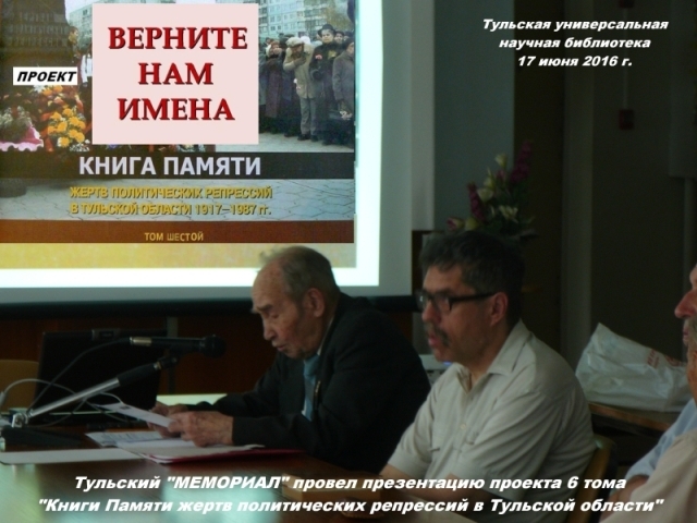 17 июня 2016 г. в Тульской областной универсальной научной библиотеке состоялась презентация проекта шестого тома Книги памяти и компании по сбору средств на издание.